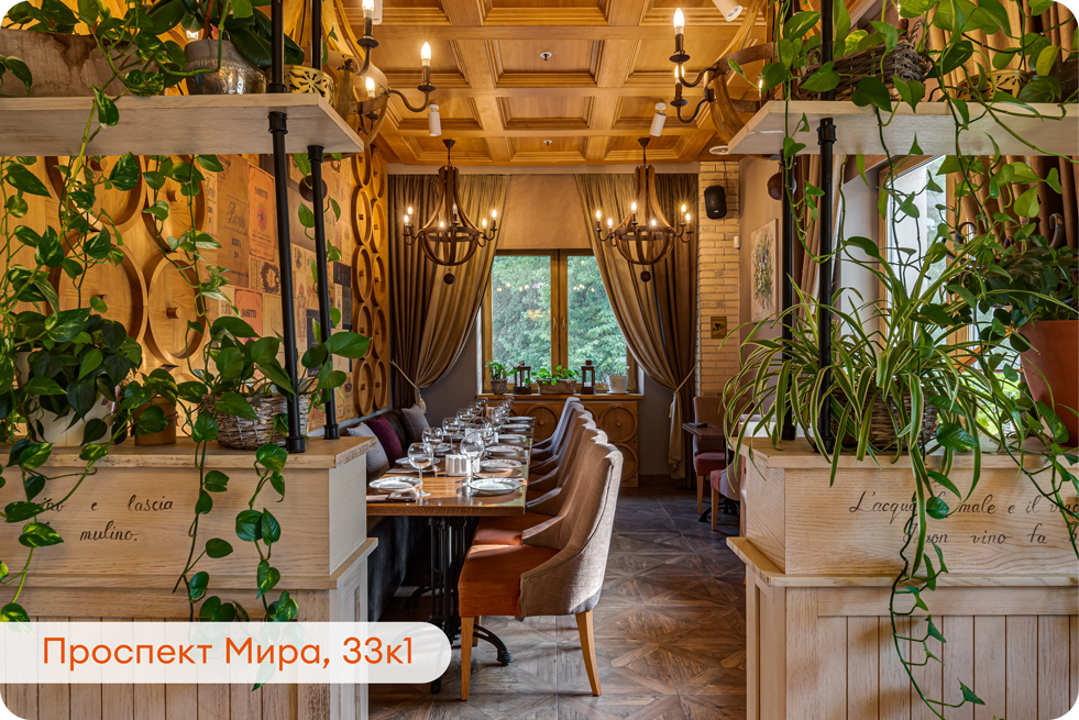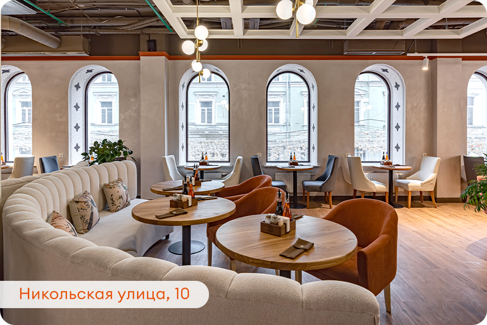В каждом ресторане доступна отдельная зона или аренда всей площади